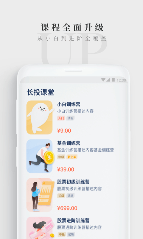 2、理财初级课程,包括基金训练营,股票初级训练营,保险实战课。