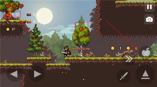 7、此件可以用来远程攻击,但需要收集苹果才能攻击,左上角就是你目前苹果的数量以及可攻击次数