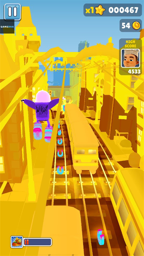 在无尽模式(包含经典无尽模式、分数赛)上,可拾取金币、收集物、钥匙、滑板、宝箱等道具,另外也可以通过完成任务、参与竞技场等方式来获得。
