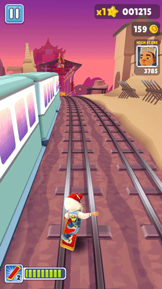 当然除了选择路线,躲避障碍也是我们需要注意的问题。一般情况下,玩家只需要进行基本操纵就能够躲避很多障碍,但是为了避免危险发生,还需要掌握其他技巧:1.轻跳:在高度不同的道路连接处上下轻跳,可以避免摔落,还可以跳过低处道路连接处,从而获得更高的分数;2.加速滑行:将手指向上滑动即可加速,但是需要注意不可以滑出屏幕范围,不然会掉进地铁站内部。