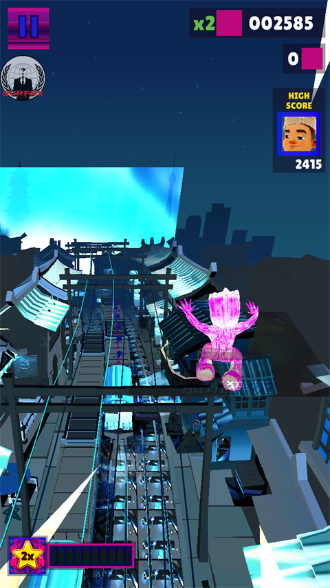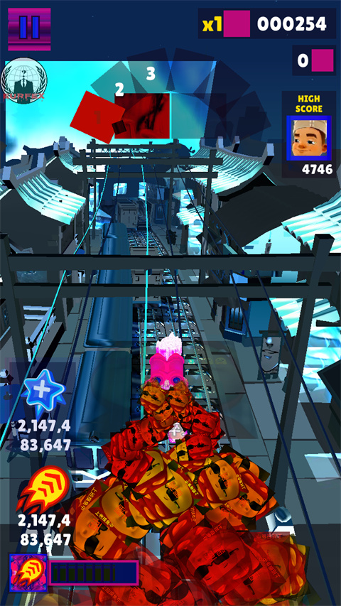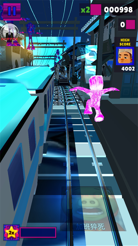 2、超刺激的游戏体验,躲避障碍物和追赶者,跳过高墙和地铁轨道等。