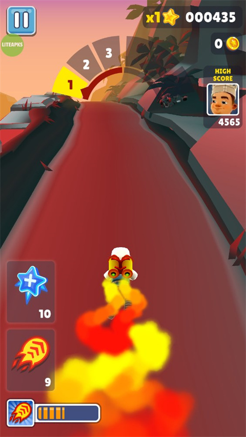 2倍速 :这里的“X2”是指倍速由X30变为X60,角色跑出一米,本来计为30分,获取X2后,角色速度稍有增加,但每一米的计分变为60,在X2的情况下,得分会更快。新手可能会不吃它,但其风险收益远高于跳跳鞋,能吃则吃。