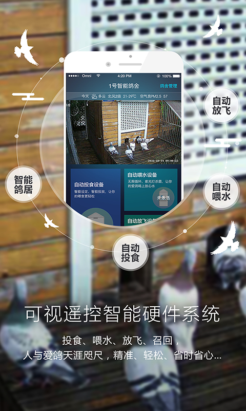 爱鸽者app是一款全面的赛鸽管理app,它定位于赛鸽运动智能化引领者,致力于提供最科学、全面的智能赛鸽管理系统。这款app主要由爱鸽者APP管理系统、爱鸽者电脑端管理系统、爱鸽者智能设备、爱鸽者智能鸽居等几大板块构成,并在积极与业界有志团队共同合作研发智能足环、智能赛鸽计时扫描系统。