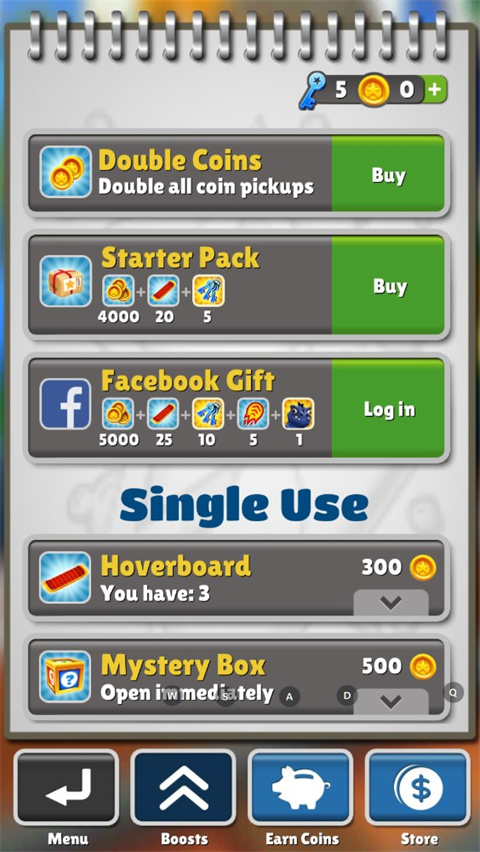 7、同时你也可以购买不同的道具,可以在游戏中发挥不同的作用,比如双倍金币、滑板等;