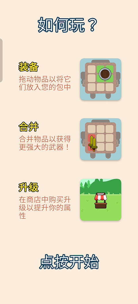 新手的话,先熟悉基本玩法,然后尽量多收集道具,放进背包里备用。两个相同的物品可以合成更好用的东西,这样打起仗来更轻松。游戏还有实时随机播放功能,感觉很混乱但又刺激。玩的时候要注意管理好背包,合理搭配武器和道具,才能在战斗中获胜。