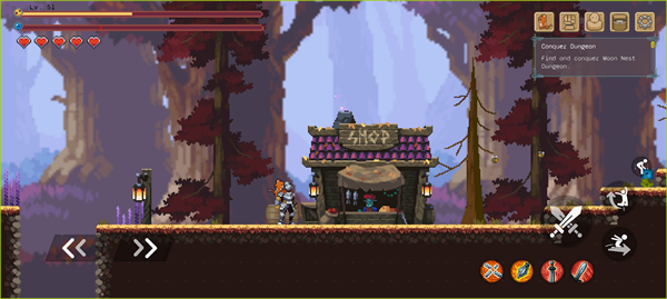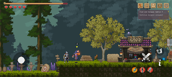 黑暗之刃是由Steam移植而来的一款2D动作冒险手游,游戏采用经典像素画风。在游戏中,玩家将扮演一名森林骑士 L。而在树林的深处,出现了一个通往哥布林巢穴的地牢的传送门。玩家需要进入地牢,消灭这些哥布林怪物,守护村子安全。在冒险过程中,玩家可以通过击败怪物,收集蓝色灵魂,这些蓝色灵魂将提供额外的经验值。此外,黑暗之刃还提供了丰富的玩法,玩家可以搭配多种技能,并带上宠物,开启一段精彩的冒险之旅。