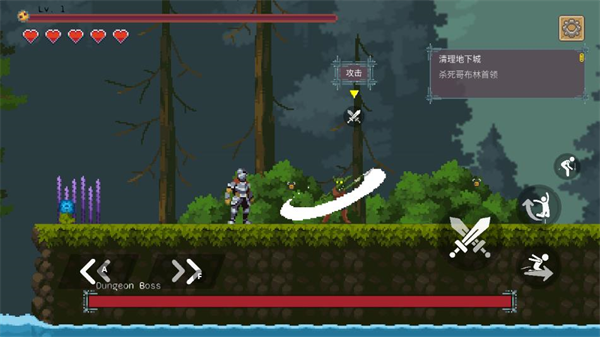 对于新手来说,设置中文很简单:进入设置→语言,切换到简体中文就行了。操作方面,用左下角按键控制移动和战斗,和NPC对话能解锁任务,每个关卡都有不同怪物和陷阱,需要小心应对。