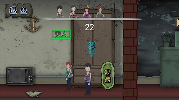 4、如果被屠夫发现则会被抓住结束游戏,如果在指定时间内没有躲藏也会结束游戏。