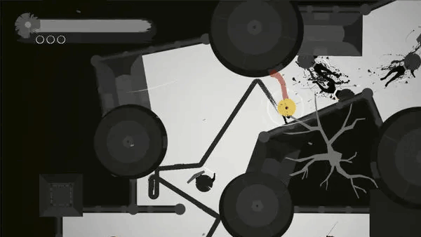 游戏核心设定为气力值和弹射机制。气力值影响冲刺的距离;冲刺途中遇到障碍物会进行反弹,同时增加冲刺距离,冲刺途中的连击数越多,气力值回复越多,落地后便可再次快速释放剑招。因此需要合理规划冲刺路线和落点位置,既实现更多连击,又避免了让自己陷入敌人包围之中。