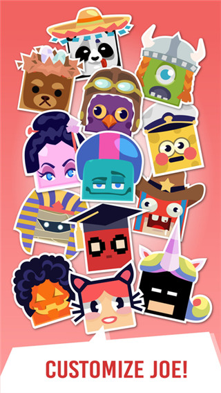 跳跃吧乔伊游戏又名Jumping Joe,这是一款由海外厂商 Deep Silver 提供的休闲娱乐类手游,单从名字命名就知道,这款游戏属于平台跳跃类型,在这里你将需要控制角色完成攀登跳跃,暂且游戏提供了两种操作方式,首先就点击操作来说,只要玩家点击屏幕下方左右两个位置就可以操控人物向对应方向跳跃;对于滑动操作而言,其实就是用左右滑动来实现方向性跳跃,两种截然不同的操作方式,其目的都是一样的,不过需要玩家注意的时,向上一步是各种机关陷阱,向下则是滚滚岩浆,即便如此,唯有向上才有出路。而关于跳跃吧乔伊的游戏画风,设计上并没有特别突出的元素,但扁平化+剪纸风格设计不免保留了几分童趣。另外,游戏中还有三种不同的挑战模式,分别是关卡模式,竞速模式和英雄模式,外加数十款不同造型的新鲜角色,皮肤造型和尾烟选择,丰富的收藏环节,让原本单一无聊的挑战,瞬时变得有趣的多,甚至这里还有许多技能可以升级强化哦,如果有喜欢的玩家,赶快来下载体验吧!