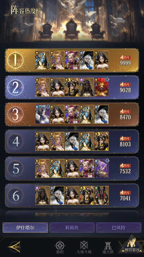 不朽箴言游戏阵容热度榜