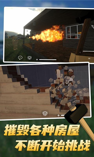3、有着超多真实的物理玩法,准备好大量不同的弹药,拿起你巨大的锤子来毁灭建筑物。