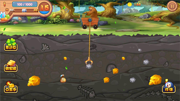 熊出没之熊大夺宝是一款基于动画《熊出没》改编的挖矿冒险闯关游戏,其画面清新精美惹人喜欢,更有超丰富关卡非常具有挑战性,考验玩家的眼力和反应速度,人物将一一出场。该游戏采用最经典的矿工模式,玩家跟着熊大一起采矿淘金,变身土豪。玩家在游戏中只需要指尖微操,看着采矿钩子的摆动方向伺机而动,即可抓住大金块。
