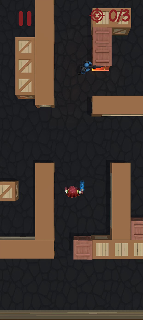 进入到暗影杀手游戏中之后,点击屏幕就可以进行攻击或者躲避攻击,我们需要击杀地图上所有的蓝衣守卫,因为我们用的是冷兵器,敌人用的是热武器,所以不能选择硬拼,需要去逐个击破,击杀一个蓝衣守卫之后我们会获得一些砖石,砖石可以用来增加我们的属性。总体来说是一款十分不错的休闲小游戏,非常适合闲暇之余打发时间。