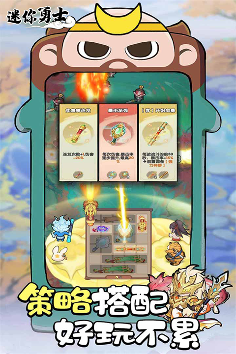 迷你勇士是一款以西游为背景的塔防手游,结合了策略、合成和养成等多种玩法。玩家扮演修行者,通过收集和合成装备与法宝来提升实力,随机生成的特性加成也让战斗充满变数。游戏福利丰富,登录即可获得金色皮肤,连续签到还有极品飞刀皮肤和炎龙首材料等丰厚奖励。
