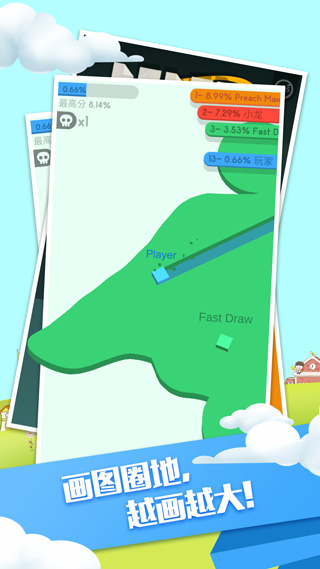3、精彩的策略性游戏打造你不但要快速进行圈地还有注意躲避其它纸团的攻击哟!