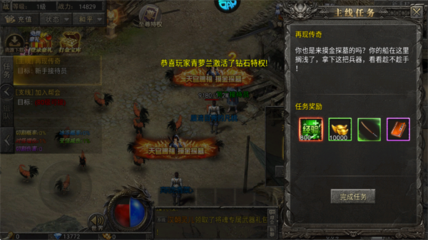 3、完成任务可领取丰厚奖励,帮助角色了解游戏,加速升级提升。