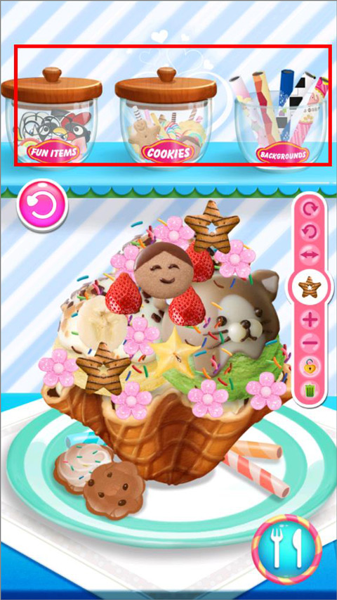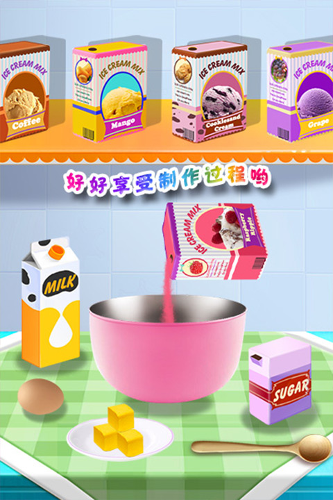 冰淇淋沙龙游戏里提供给玩家冰淇淋制作的材料和步骤,让玩家即使没有工具材料也可以体验制作美食的乐趣。玩家可以混搭不同口味的冰淇淋,添加不同的冰淇淋装饰,让玩家的冰淇淋看起来更美味,色彩鲜艳的搭配为玩家带来清新的视觉效果,不同的做法能有不同的感觉。玩家在游戏中将真实体验冰淇淋的制作过程,快来下载试试吧。