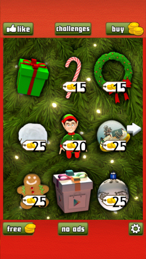 3、完成挑战即可解锁新物品。玩常见的滑动得分游戏,或畅玩“捉精灵”和“跳圣诞舞”等迷你游戏!投几个圣诞礼物篮筐,或者让他疯狂地换台。