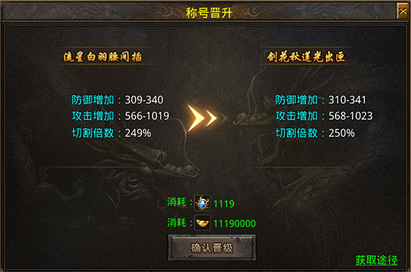 称号满级后增加250%的切割倍率,每提升50%需要前往下一个大陆后才能继续提升。