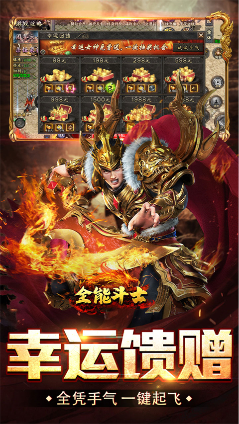 全能斗士传奇手游福利丰富,玩家上线就能领取豪华礼包,获得自动回收、拾取等各种特权,更有永久0.1折充值福利,商城充值任意金额都能享受0.1折优惠,以极低的价格充值海量元宝,轻松解锁各种充值福利,领取百倍返利,让玩家秒变沙城大佬,称霸传奇世界。