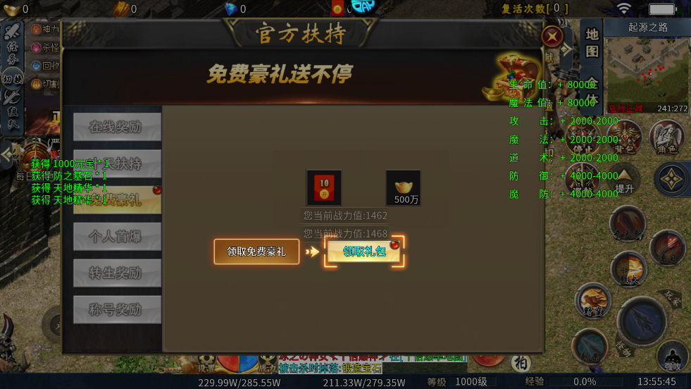 山河传奇手游是一款福利拉满的超变版本传奇游戏,装备奖励爆率超高,多款职业选择,不同副本挑战,打怪无限爆充值的超级福利。在山河游戏中加入了超多的丰富福利,每日登录游戏就可以领取豪华大礼,还有多样的地图、专属神器、加速装备、鞭尸神器、炫酷光柱以及免费礼包等游戏玩法,超多活动一定玩的爽快!