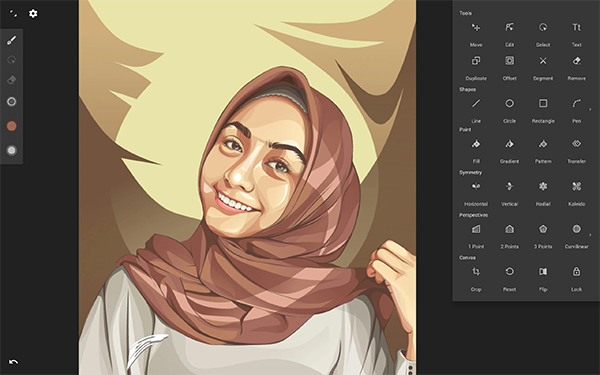 对于设计师而言,他就是一款随身携带的矢量神器,它为用户提供了各种不同的刷子,还可以使用五种不同类型的对称性(X轴,Y轴,任意角度,径向和万花筒),由于创建的所有路径都是基于矢量的图形的特性,因此您可以无限放大,缩小或平移,让您的手机成为通向整个世界的窗口,让您的想像力自由发挥。