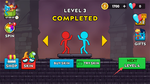 操作很简单,只需要点击屏幕右下角的“交换”按钮就能切换角色,避开障碍物前进。虽然游戏看起来简单,但需要仔细配合才能顺利过关。游戏里还能收集宝石,增加一些趣味性。更新日志显示最近版本增加了更多皮肤和关卡,优化了界面体验,感觉开发商挺用心的。