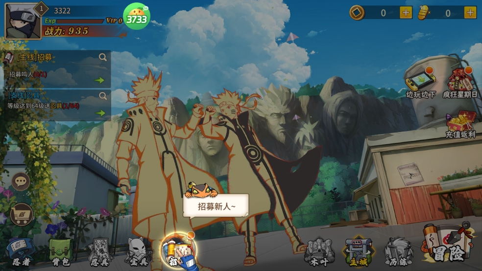 3、首先新手教程会引导玩家去招募忍者,组建你的冒险队伍。