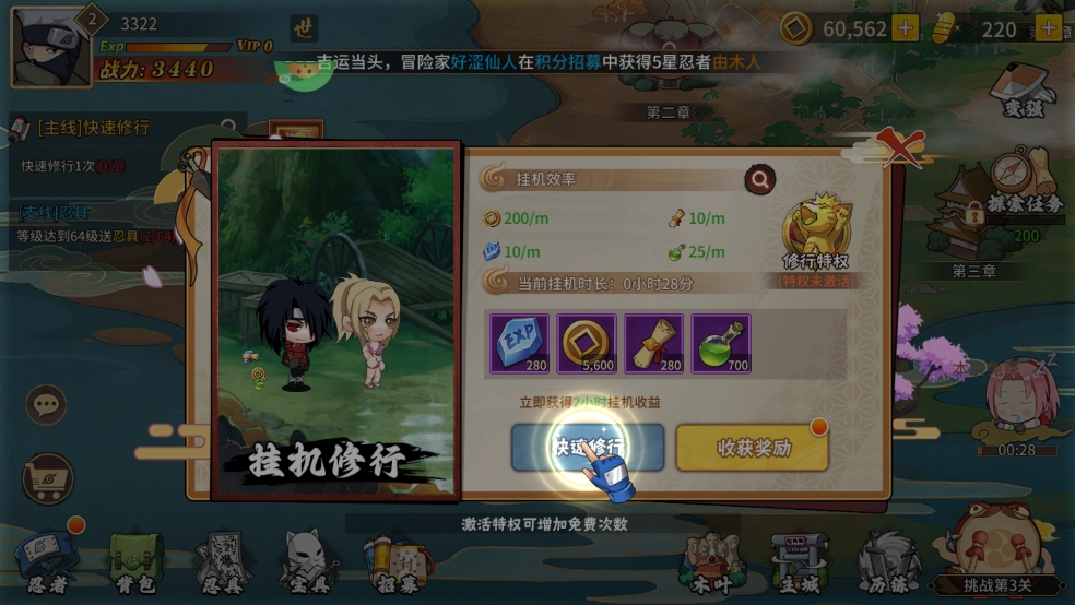 6、也可以点击快速修行,快速升级,解锁更多功能,玩家可以自由探索。