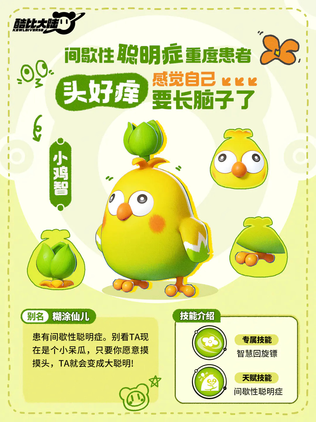 智慧回旋镖:将头顶长出的聪明花像回旋镖一样扔出。——这一镖,全是智慧!