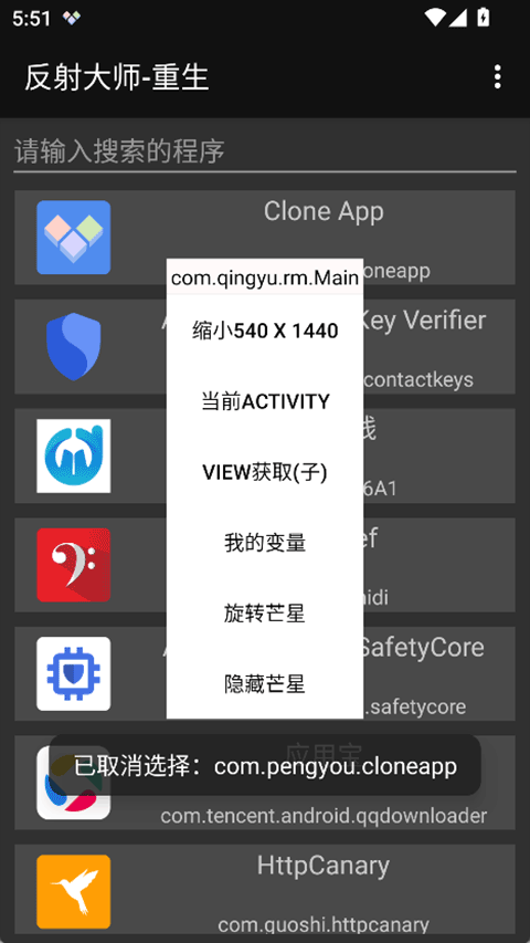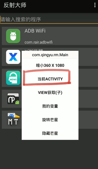 在目标软件Activity启动后,反射大师会启动一个悬浮窗,基于当前的Activity对象进行可视化代码调用操作,提高操作效率。