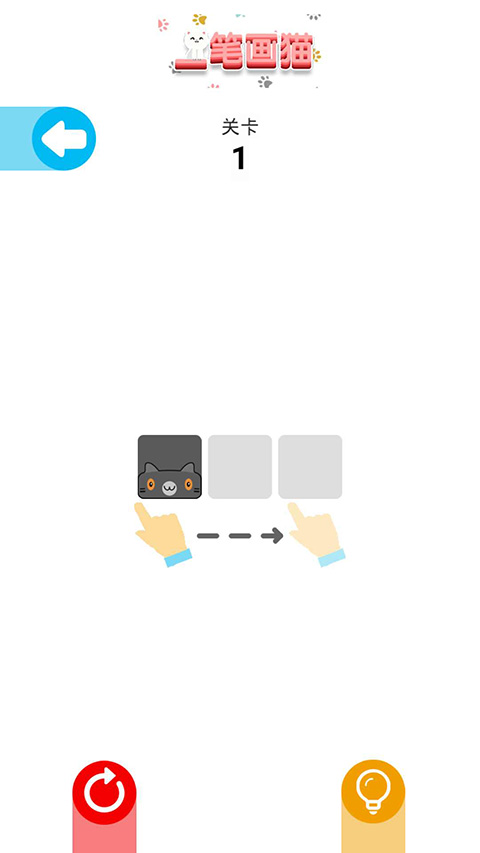 1、白猫、灰猫、黄猫等各种可爱的小猫咪在指尖上去一笔完成画猫任务吧。