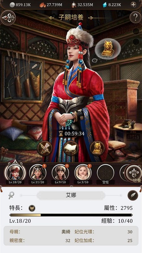 身为一名可汗,从中亚到东欧一路征服,怎能少的了美人伴随,在游戏中,产品提供了高品质的美人立绘,玩家可对妃子进行征服、召见,以及宠幸等等,搭配了一整套的互动玩法。