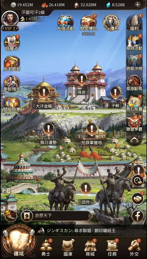 2、勤政系统,处理不同部族纷争,提升可汗等级,享受极致称王体验。