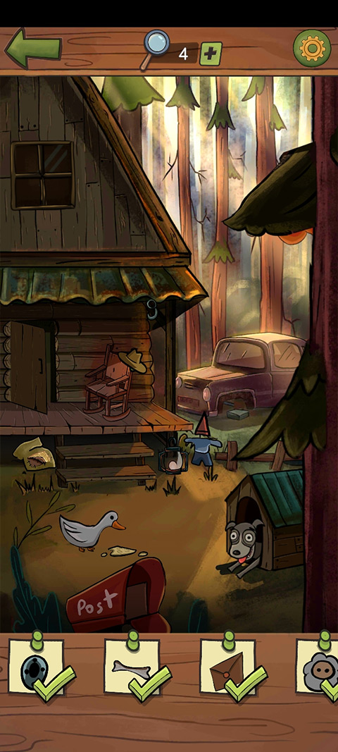 2、开始寻找乔吧,将下方便签中的物品统统在房间内找到,比如向右滑动帽子,你会发现一个铰链,点击它将这个作为案件线索收集起来吧。