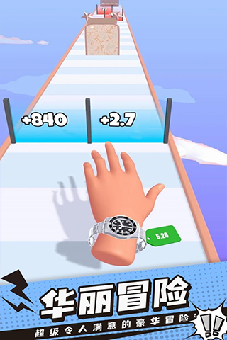 手表进化论是一款休闲闯关升级非常好玩的小游戏,采用了卡通画面,画质清晰度高,在这里拥有不同品牌款式的手表,玩家需要操控手上的手表前行,跳入身临其境且超级令人满意的豪华冒险!通过大门逐步提升手表的价值,躲避各种障碍物,用各种机械来重新塑造,或者使用装饰品来进行打扮,感受手表历史的变迁,游戏非常不错哦。喜欢的朋友不要错过这款游戏哦!快来下载吧!