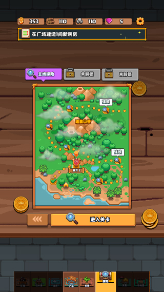 优先升级雕像和集市。(其余建筑不重要!!)集市每15分钟刷新一次,可以通过倒卖特价商品赚取差价。前期可以看广告获得木头和石头快速升级。