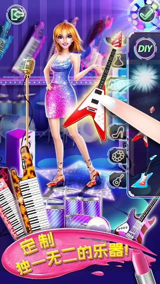 2、设计专属吉他或其他乐器,选择音乐曲目,登上炫彩舞台