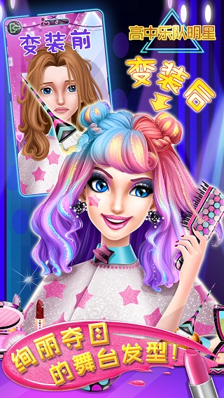 高中乐队明星是一款超酷炫的换装游戏,你是否曾经梦想过组建一个摇滚乐队,在盛大的场馆里举办演唱会?这不,艾玛的乐队马上就要参加摇滚乐比赛举办一场盛大的演唱会了,这是她们第一次登上这么大的舞台!但是她对演唱会该画什么妆、穿什么衣服、选哪把乐器演奏完全没有头绪!她现在需要你的帮助!该以怎样的造型出现在观众的视线中呢?怎样才能引爆全场呢?这些现在全部都由你来设定,喜欢的小伙伴们快来下载吧!快来一起加入这难忘的摇滚之星奇遇记,帮助艾玛完成这场盛大的演出吧!