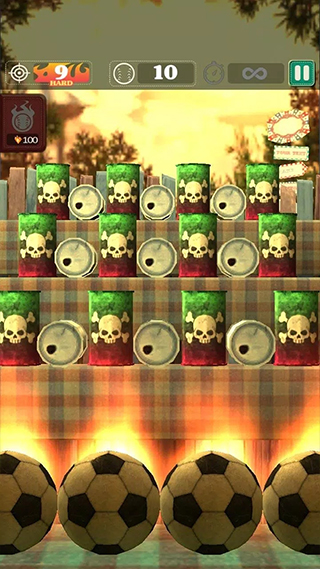 - 球限制模式:击中罐头,打破盘子,打分目标,击中果实。