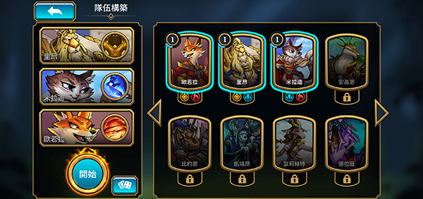 2、进入游戏之前,我们要选择三名出战的英雄,最好选择互补的英雄,这样对战起来更加有利;