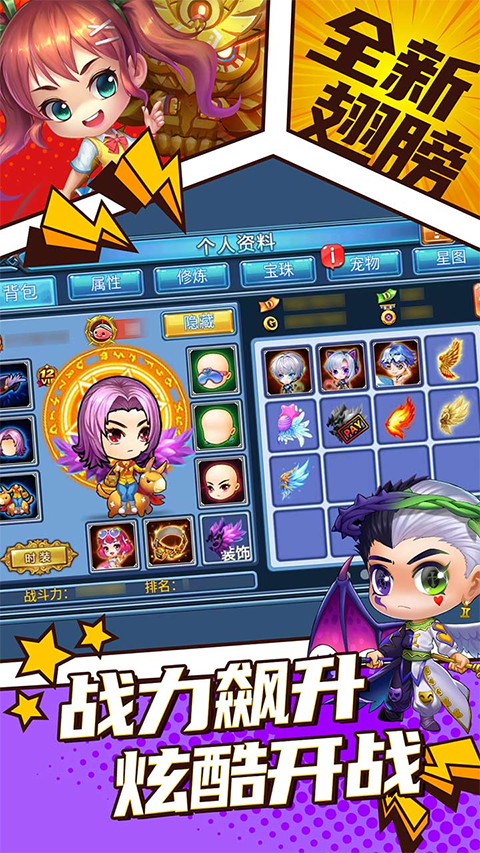 多元化社交体系,丰富的玩法离线也能玩~休闲1V1、热血2V2,一起互动不孤单!全民勇士跨服爆肝到天明!