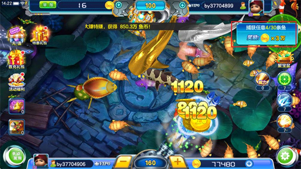 4、捕获积分鱼累积积分到目标数量,即可参与指定宝盆的抽奖