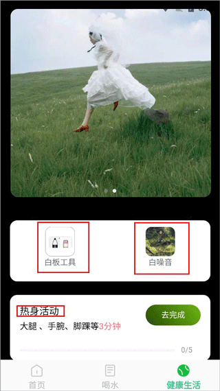 3、打开健康生活,主要有运动打卡功能、白板工具、白噪音;