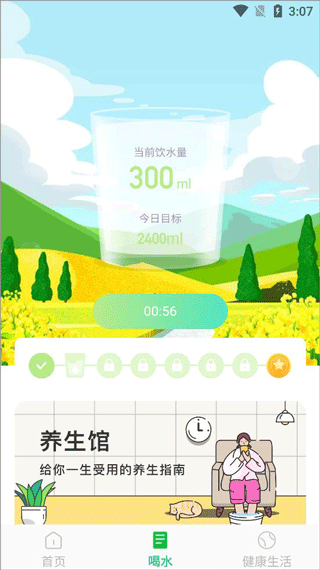 2、打开喝水页面,可以添加喝水打卡;