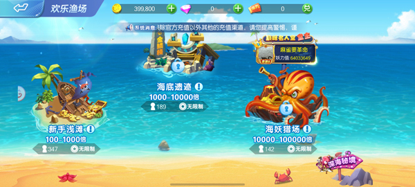 2、进入游戏后,首先选择一个渔场;