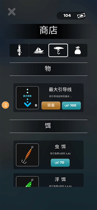 四、在商店中,玩家还可以购买鱼叉、船、诱饵等道具,来捕捉更稀有的鱼