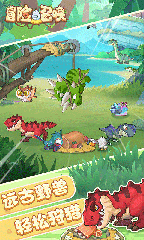 冒险与召唤中文版是一款开箱养成类手游,身处石器时代的你,不需要对抗远古怪物获取装备,也不需要闯过一个又一个的难关,只要不停打开眼前的宝箱,就能获取各种远古神装,是不是非常简单?不过为了满足大多数勇士需求,冒险与召唤设计了很多PVE的玩法来满足各位勇士的探索之旅!