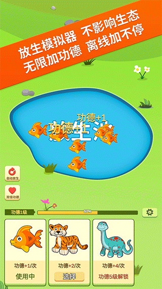 1、点击屏幕即可放生动物增加功德